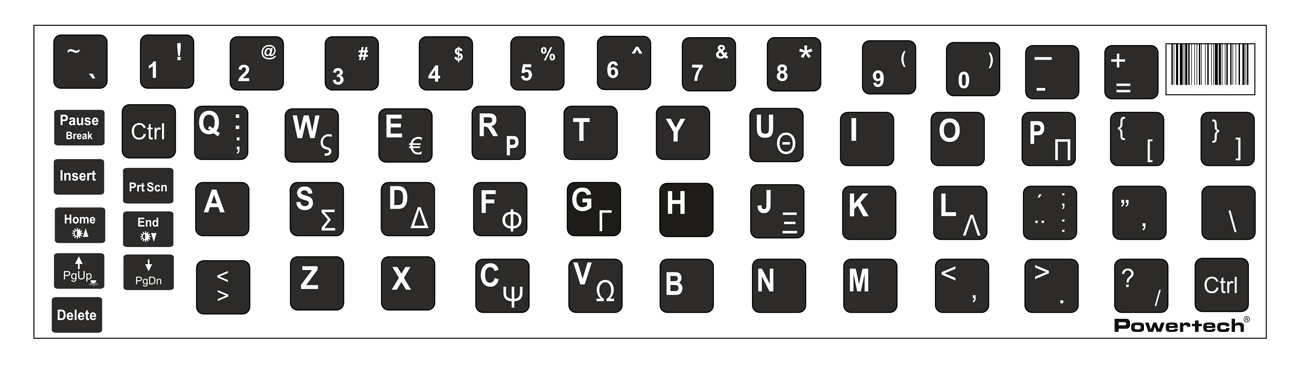 POWERTECH αυτοκόλλητα πληκτρολογίου PT-1419 με ελληνικούς & αγγλικούς χαρακτήρες, μαύρο
