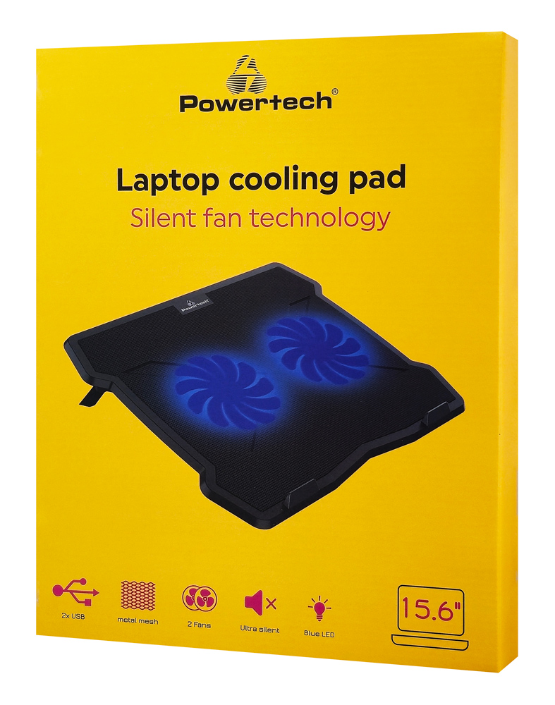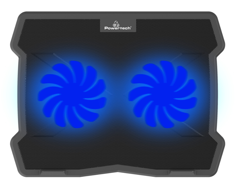 POWERTECH Βάση & ψύξη laptop PT-930, έως 15.6″, 2x 125mm fan, LED, μαύρο