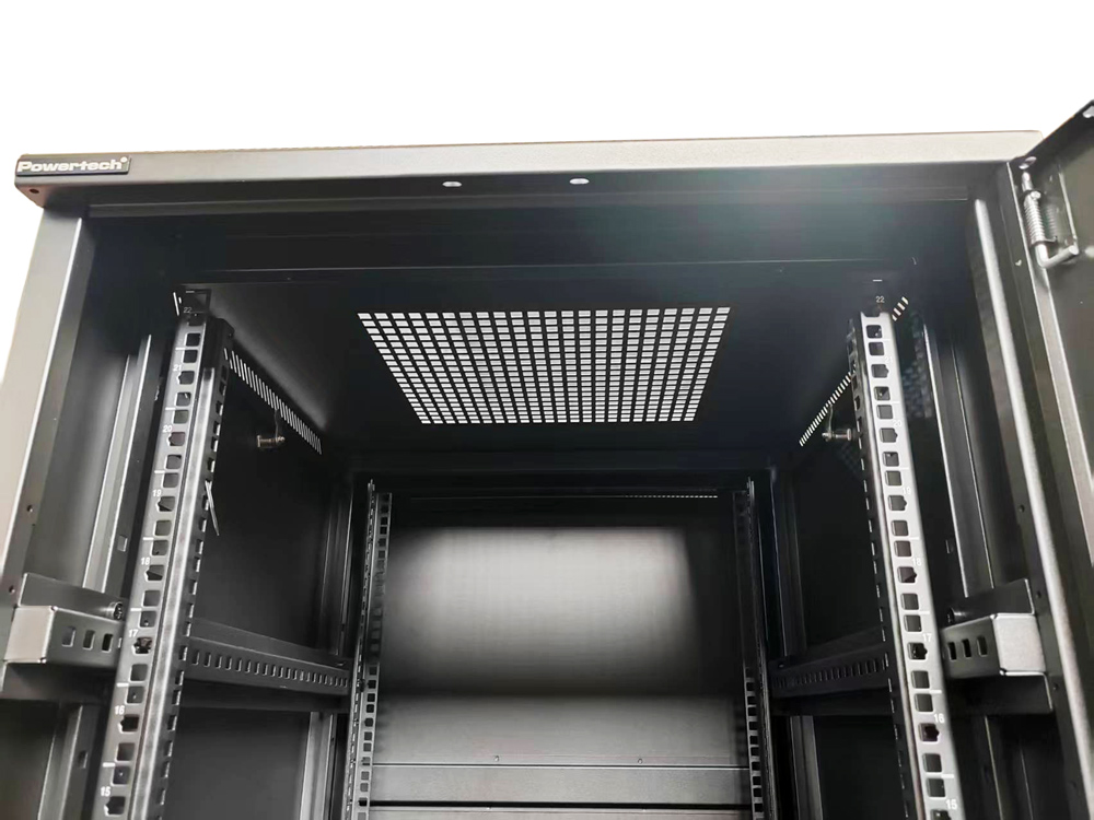 Το rack έχει θυρίδες εξαερισμού περιμετρικά και στην οροφή και το πάτωμα του διαθέτει αφαιρούμενες θυρίδες που μπορούν να χρησιμοποιηθούν για την εισαγωγή/εξαγωγή καλωδίων ή την τοποθέτηση συστημάτων fan. Οι θυρίδες διαθέτουν βίδες, επομένως είναι επανατοποθετούμενες.