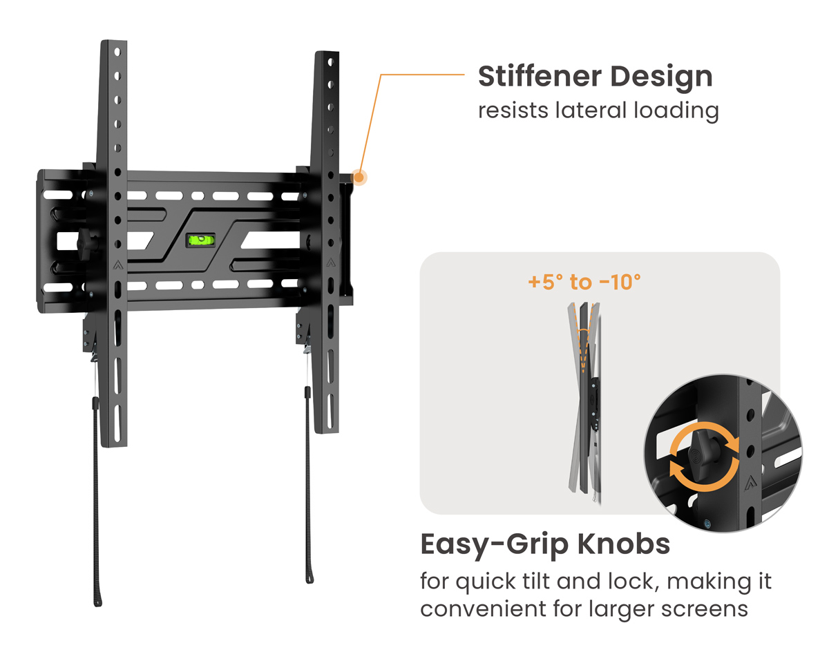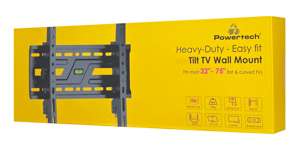 POWERTECH επιτοίχια βάση τηλεόρασης PT-1372, 32-75″, έως 75kg, ρυθμιζόμενη κλίση