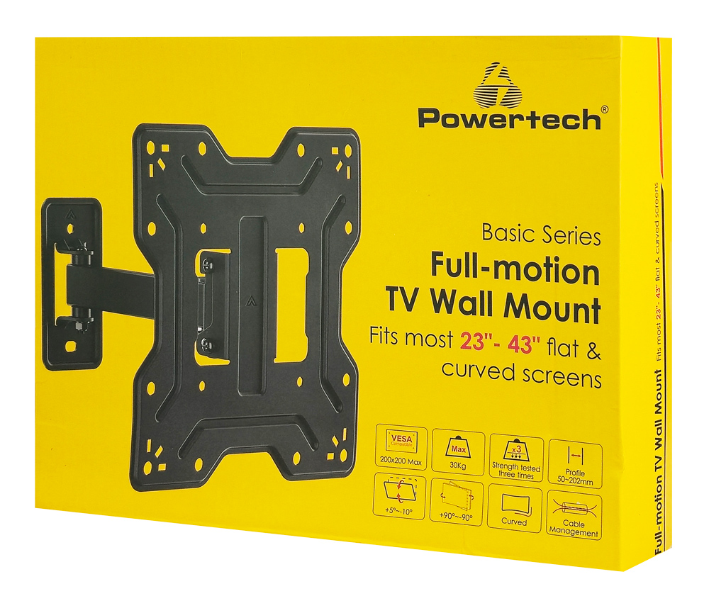 POWERTECH επιτοίχια βάση τηλεόρασης PT-1555, 23-43″, έως 30kg, full motion