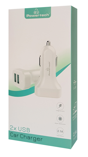 POWERTECH φορτιστής αυτοκινήτου PT-799, 2x USB, 2.1A, λευκός