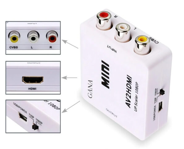 Ο Mini AV2HDMI είναι ένας Universal μετατροπέας για μετατροπή από αναλογική σύνθετη είσοδο σε έξοδο HDMI 1080p(60Hz). Η αναλογική προς ψηφιακή μετατροπή χρησιμοποιεί 10bit/162MSPS. Διαθέτει black/white διαβάθμιση, διαβάθμιση για την βελτίωση των χρωμάτων, auto-detect και auto-convert από σύνθετο σήμα σε έξοδο 1080p(60Hz). Ζωντανεύει τα βίντεο, κάνοντάς τα πιο ευκρινή, με πιο ρεαλιστικά οπτικά εφέ HD.