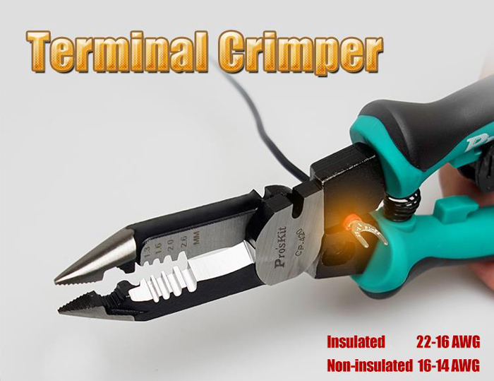 -Crimper: Insulated: 22~16AWG, Non insulated: 16~14AWG