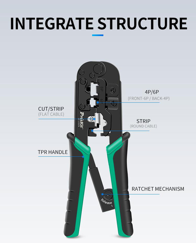 PROSKIT πρέσα ακροδεκτών CP-376TR για καλώδια δικτύου 4P/6P/8P