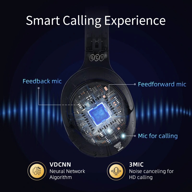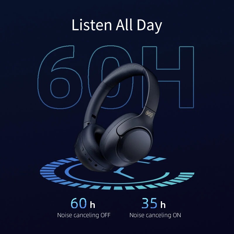 QCY H3 High-Res Headset Blue – w. Mic, Active Noise Canceling with 4 mode ANC 60h Multipoint