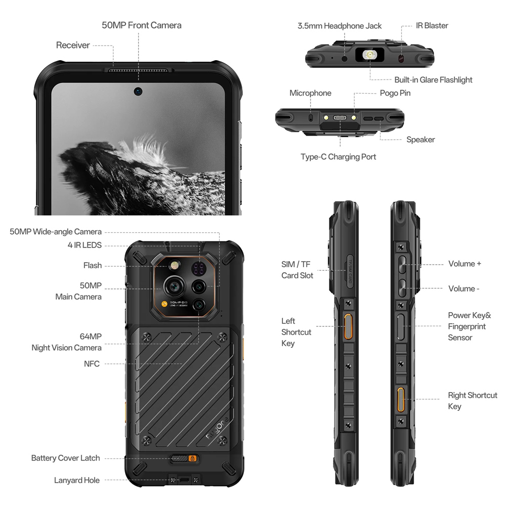 RUGONE smartphone Xever 7, 6.67″, 12/512GB, 5G, 5550mAh, IP68/IP69K/MIL-STD-810H, μαύρο