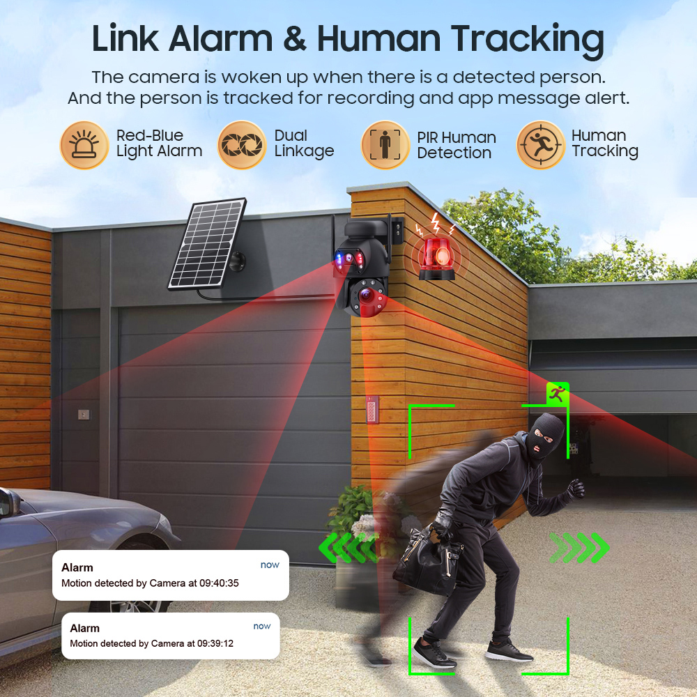 SECTEC smart ηλιακή κάμερα ST-5986M, 3MP dual lens, 20x zoom, 4G, SD, PTZ