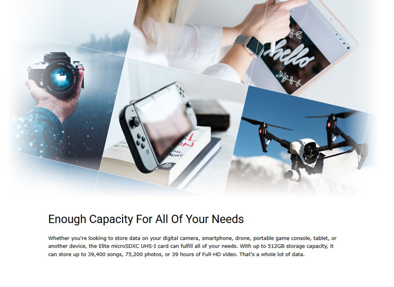 Διαθέτουν μεγάλη χωρητικότητα, αρκετή για να αποθηκεύσετε εικόνες, βίντεο, μουσική, παιχνίδια και εφαρμογές στο smartphone, το tablet ή την κάμερα σας.