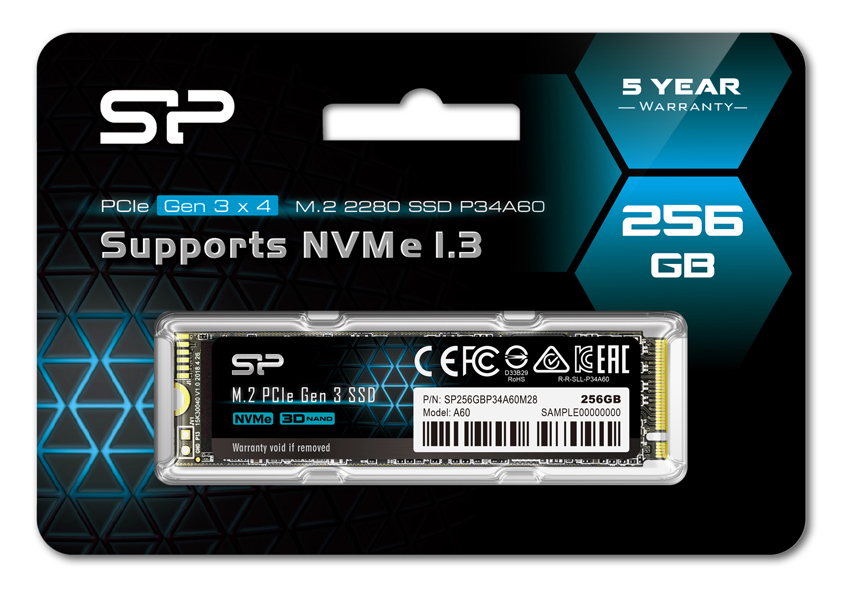 SILICON POWER SSD PCIe Gen3x4 P34A60 M.2 2280, 256GB, 2.200-1.600MB/s