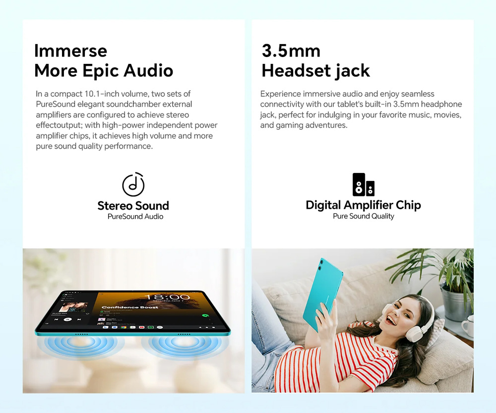 Με 3GB (+6GB virtual) RAM και 64GB ROM για να αποθηκεύετε τα αγαπημένα σας αρχεία, φωτογραφίες και βίντεο. Επιπλέον, προσφέρει την δυνατότητα να επεκτείνετε τον χώρο αποθήκευσης του tablet με κάρτα micro SD έως 1TB.