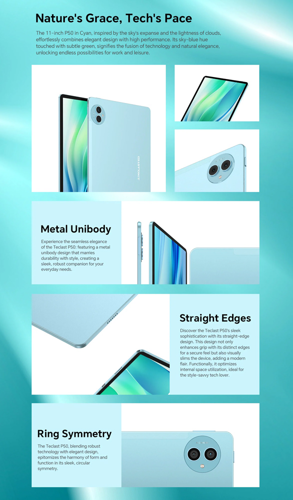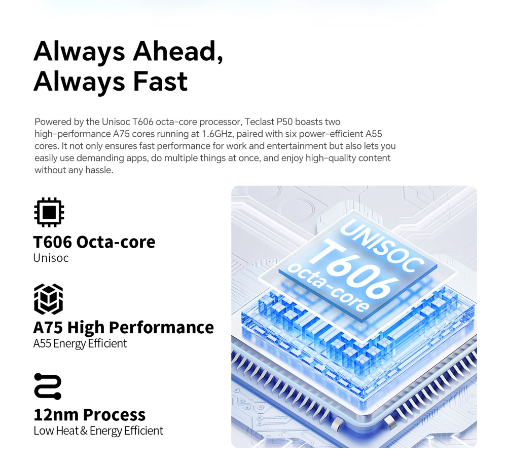 Το tablet P50 της Teclast συνδυάζει εντυπωσιακές επιδόσεις και εκλεπτυσμένο σχεδιασμό. Με μεγάλη οθόνη 11″, ευέλικτο σύστημα λειτουργικού Android 14 και ισχυρό οκταπύρηνο επεξεργαστή, το P50 προσφέρει υψηλή απόδοση, για απρόσκοπτη περιήγηση στο διαδίκτυο, παιχνίδια, πολυμέσα και πολλά άλλα.