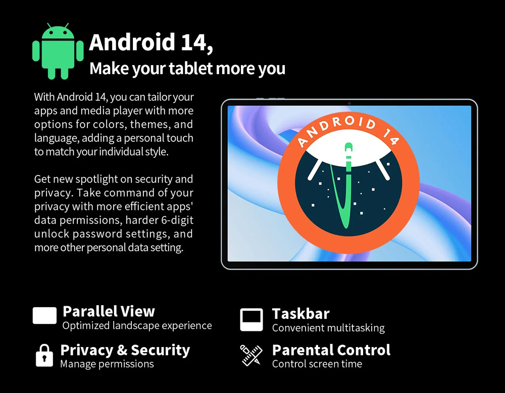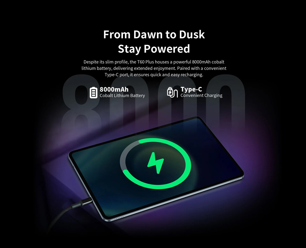 Εξοπλισμένο με επεξεργαστή 8 πυρήνων και λειτουργικό Android 14, το T60 Plus προσφέρει υψηλή απόδοση για απρόσκοπτη περιήγηση στο διαδίκτυο, παιχνίδια, πολυμέσα και πολλά άλλα.