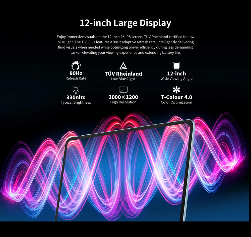 Με υποστήριξη διπλής κάρτα SIM και δικτύου 4G, το tablet T60 Plus σας επιτρέπει να παραμείνετε συνδεδεμένοι όπου κι αν βρίσκεστε. Επιπλέον, η τεχνολογία WiFi σας εξασφαλίζει γρήγορη και αξιόπιστη ασύρματη σύνδεση.