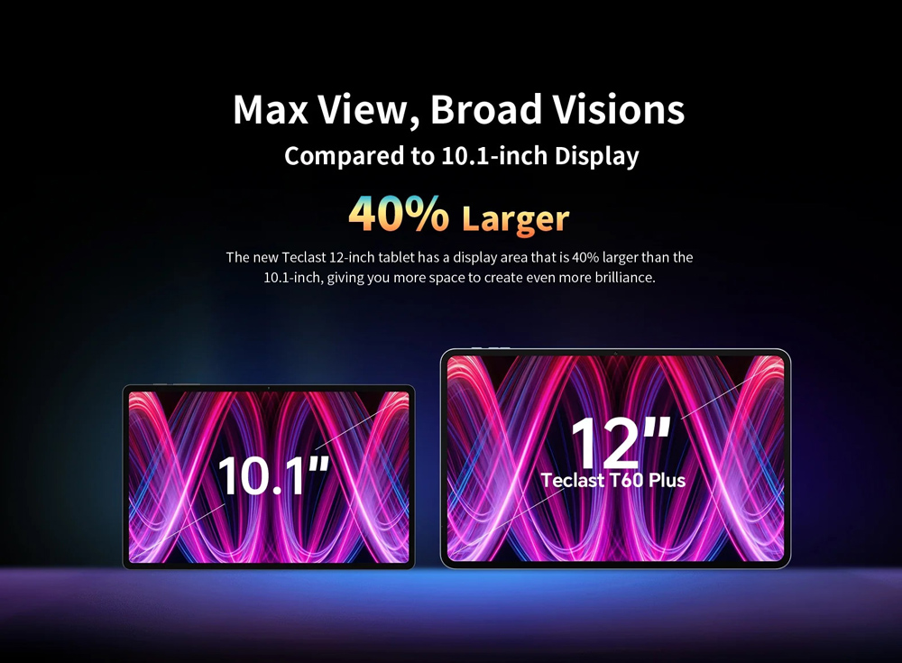 Το tablet T60 Plus της Teclast συνδυάζει εντυπωσιακές επιδόσεις και εκλεπτυσμένο σχεδιασμό. Με μεγάλη οθόνη 12″, ευέλικτο σύστημα λειτουργικού Android 14 και ισχυρό οκταπύρηνο επεξεργαστή, το T60 Plus προσφέρει υψηλή απόδοση, για απρόσκοπτη περιήγηση στο διαδίκτυο, παιχνίδια, πολυμέσα και πολλά άλλα.