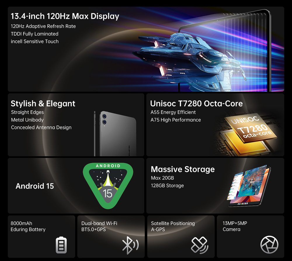 TECLAST tablet T65 με πληκτρολόγιο/στυλό αφής/θήκη, 13.4″, 6/128GB, 4G, Android 15, 8000mAh, γκρι