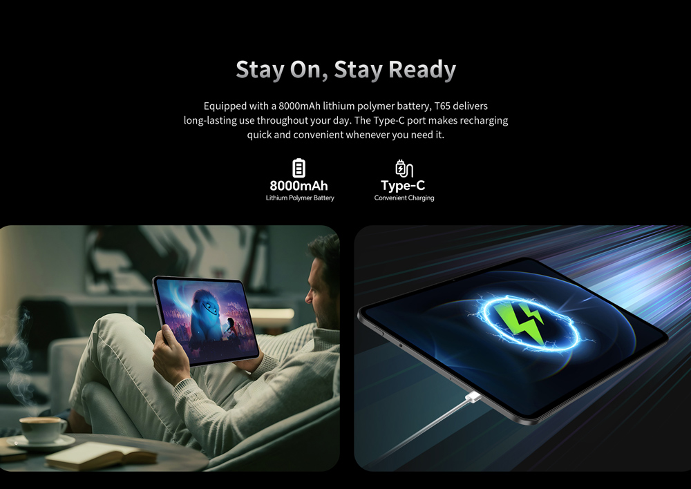 Εξοπλισμένο με επεξεργαστή 8 πυρήνων και λειτουργικό Android 15, το T65 προσφέρει υψηλή απόδοση για απρόσκοπτη περιήγηση στο διαδίκτυο, παιχνίδια, πολυμέσα και πολλά άλλα.