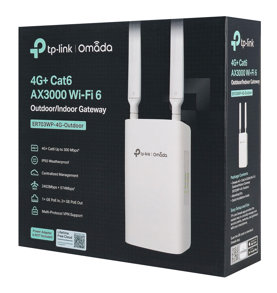 TP-LINK access point ER703WP-4G-Outdoor, WiFi 6, 3000Mbps AX3000, 4G+ Cat6, V1.0