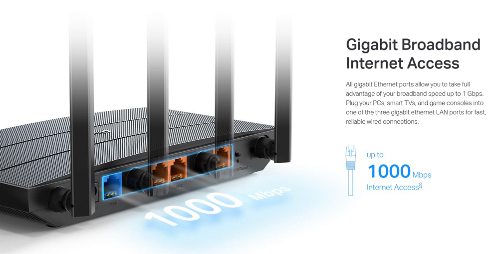 Ethernet Ports: 1x Gigabit WAN Port, 3x Gigabit LAN Ports