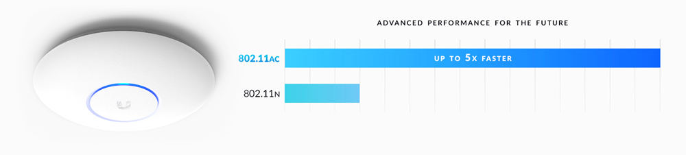 Ubiquiti access point σχεδιασμένο για εσωτερικό ή εξωτερικό χώρο, με δυνατότητα τοποθέτησης σε οποιαδήποτε επιφάνεια τοίχου ή οροφής. Υποστηρίζει τεχνολογία dual-band 3×3 MIMO στα 5GHz και 2.4GHz, με ταχύτητες έως 1300 Mbps στο πρότυπο 802.11ac και έως 450 Mbps στο πρότυπο 802.11n