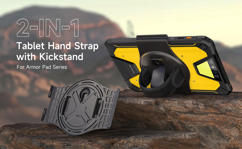Βάση της Ulefone συμβατή με το tablet Armor Pad 2. Διαθέτει ιμάντα ο οποίος μπορεί να τοποθετηθεί στο χέρι για άνετο και ασφαλές κράτημα του tablet με το ένα χέρι.