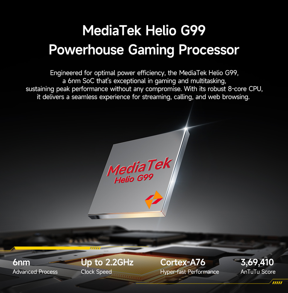 -Επεξεργαστής: MediaTek Helio G99 6nm, MT6835T, Octa Core, up to 2.2GHz