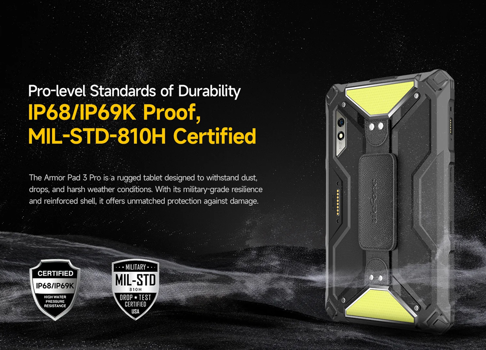 Με πιστοποίηση IP68/IP69K/MIL-STD-810H, το tablet Armor Pad 3 Pro είναι σχεδιασμένο για να αντέχει σε ακραίες συνθήκες χρήσης και περιβάλλοντα.