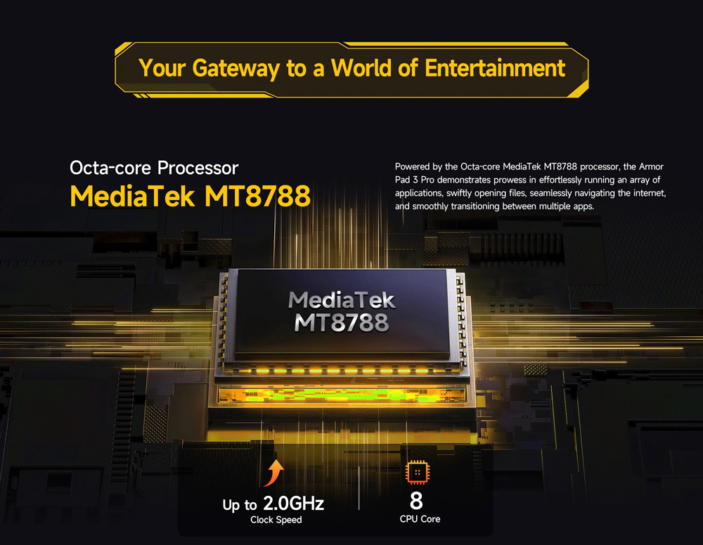 Εξοπλισμένο με επεξεργαστή 8 πυρήνων και λειτουργικό Android 13, το Armor Pad 3 Pro προσφέρει υψηλή απόδοση για απρόσκοπτη περιήγηση στο διαδίκτυο, παιχνίδια, πολυμέσα και πολλά άλλα.