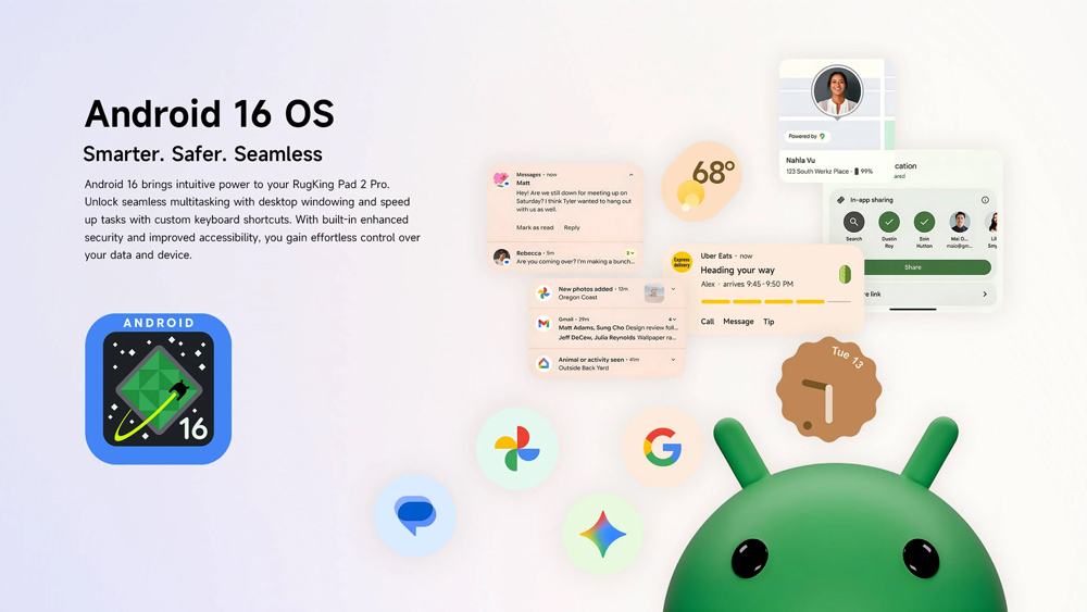 Εξοπλισμένο με επεξεργαστή 8 πυρήνων και λειτουργικό Android 16, το RugKing Pad 2 Pro προσφέρει υψηλή απόδοση για απρόσκοπτη περιήγηση στο διαδίκτυο, παιχνίδια, πολυμέσα και πολλά άλλα.