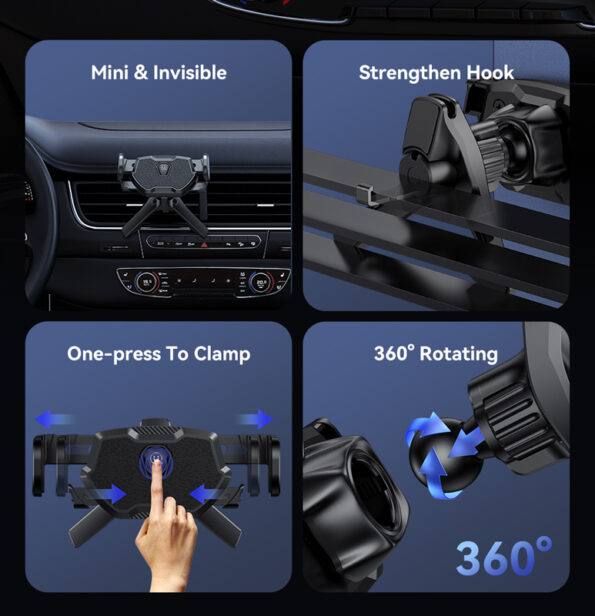 Βάση αυτοκινήτου για smartphone με στήριξη σε οριζόντιους ή κάθετους αεραγωγούς του αυτοκινήτου.