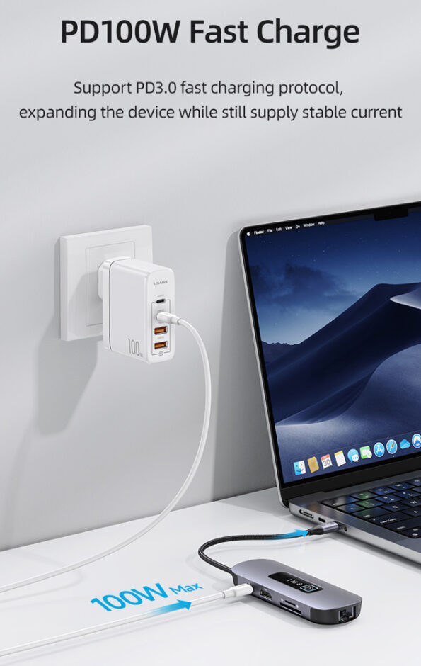 Μέσω της θύρας RJ45 σας επιτρέπει την ενσύρματη σύνδεση στο δίκτυο με ταχύτητες έως 1000Mbps ενώ μέσω της θύρας USB-C PD μπορείτε να φορτίσετε το laptop σας με απόδοση έως 100W.
