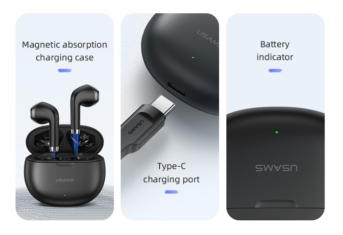 USAMS earphones με θήκη φόρτισης US-YO17, True Wireless, Φ13mm, μαύρα