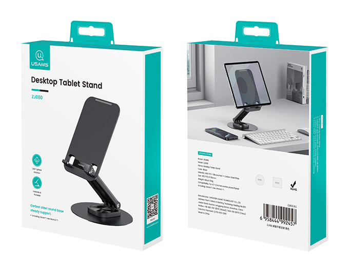 USAMS επιτραπέζια βάση για tablet ZJ080 έως 12″, foldable, μαύρη