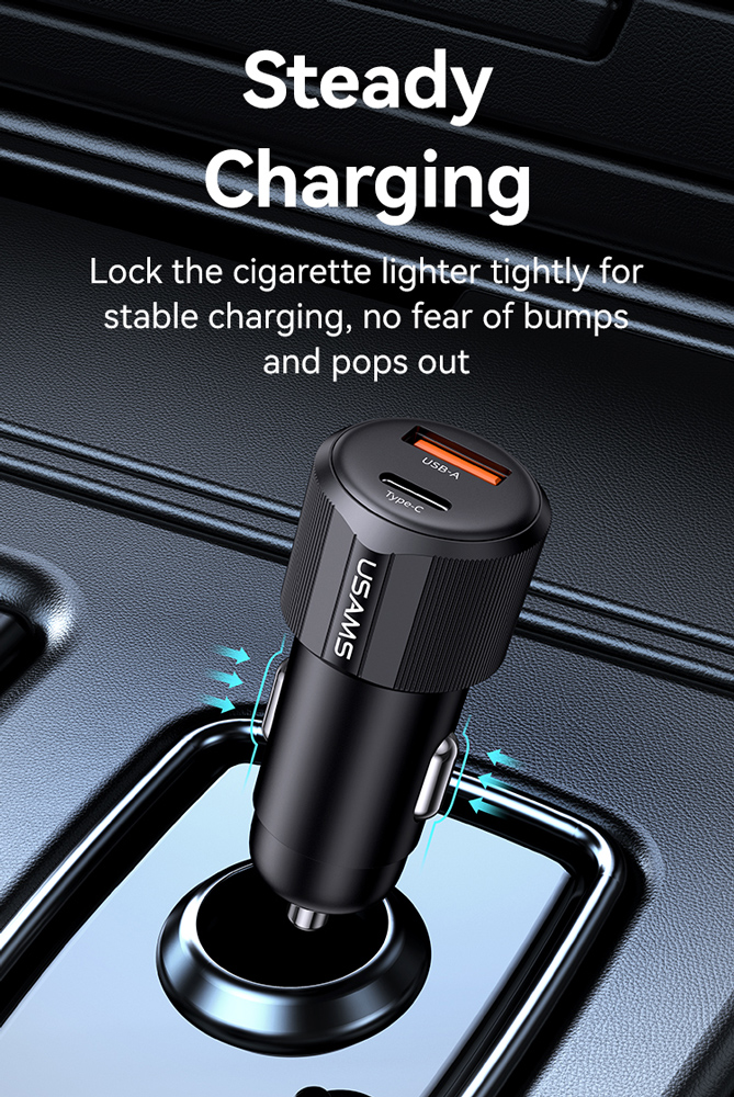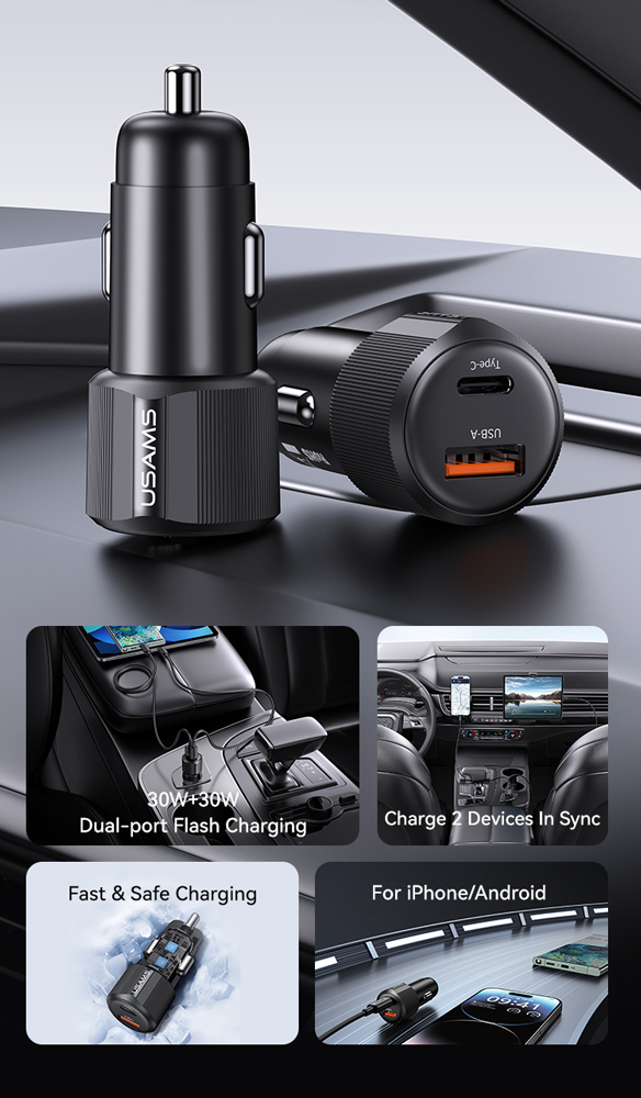 Υψηλής απόδοσης φορτιστής αυτοκινήτου της Usams, κατασκευασμένος από ανθεκτικό υλικό και συμβατός με συσκευές που φορτίζουν μέσω θύρας USB.