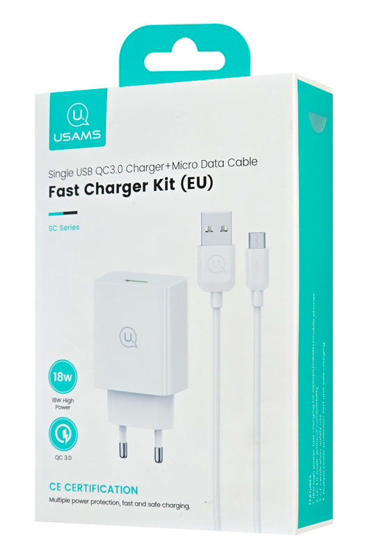 USAMS φορτιστής τοίχου SCXLTZ01 με καλώδιο micro USB, USB, 18W, λευκός