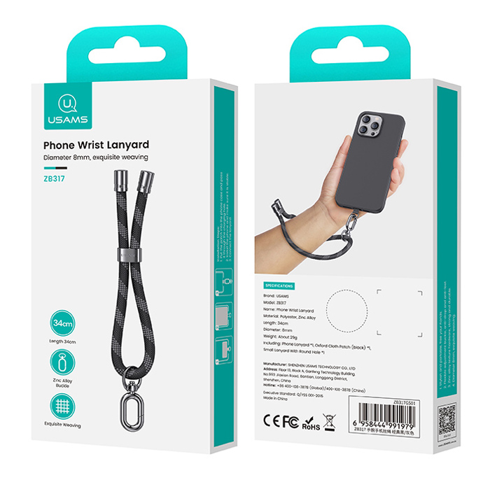 USAMS κορδόνι καρπού για κινητά ZB317, 34cm, universal, μαύρο