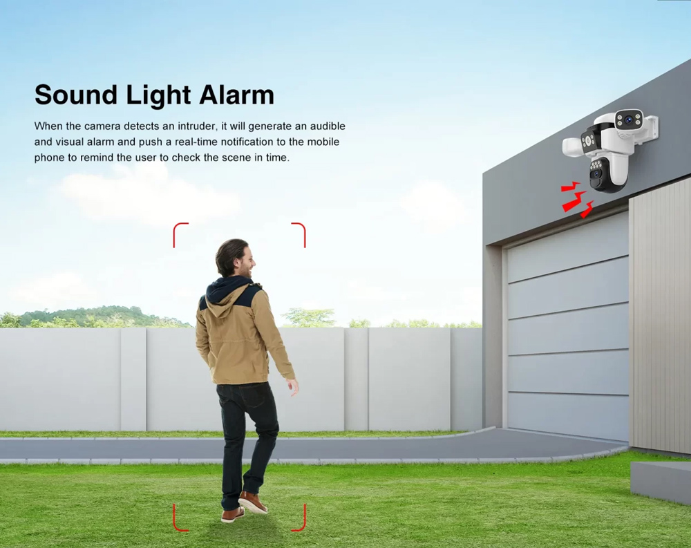 Μπορεί να ανιχνεύσει την ανθρώπινη σιλουέτα και κίνηση, στέλνοντας ειδοποιήσεις στο smartphone σας κάθε φορά που ανιχνεύεται κίνηση αλλά και να ενεργοποιήσει ηχητικό και οπτικό (με φως) συναγερμό.