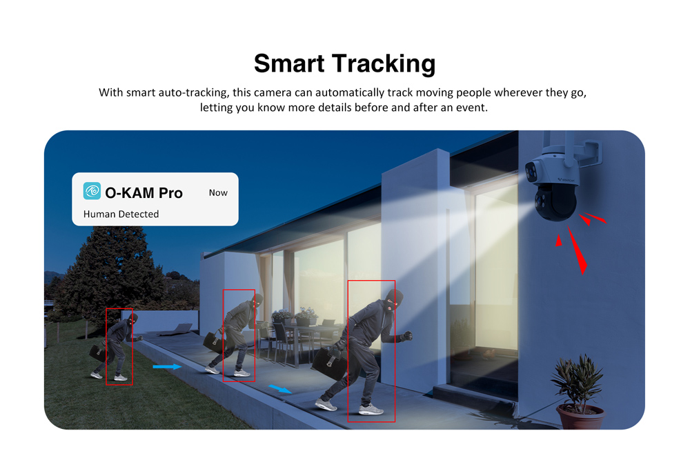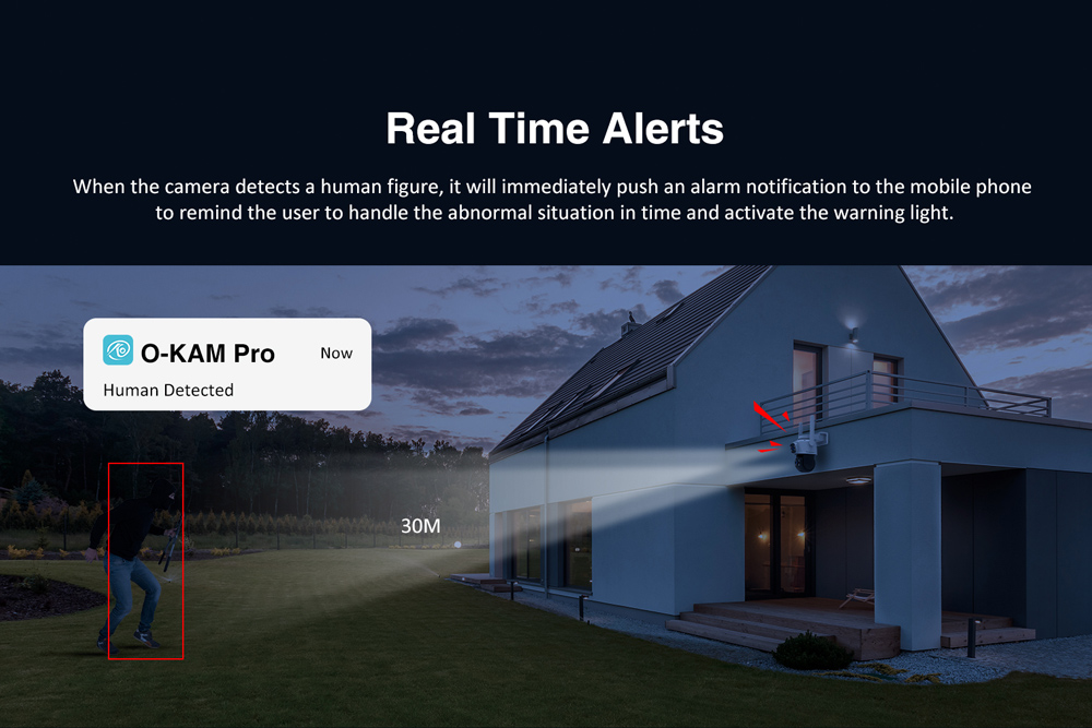 Μπορεί να ανιχνεύσει την ανθρώπινη σιλουέτα και κίνηση, στέλνοντας ειδοποιήσεις στο smartphone σας κάθε φορά που ανιχνεύεται κίνηση αλλά και να ενεργοποιήσει ηχητικό και οπτικό (με φως) συναγερμό.